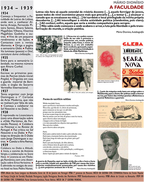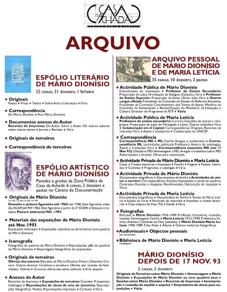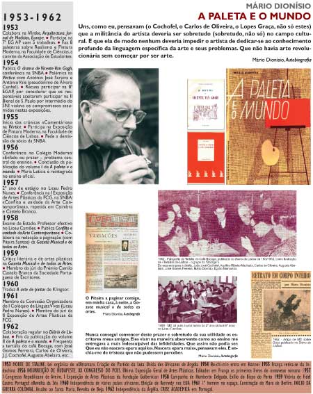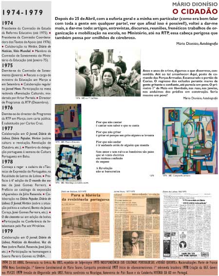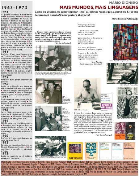 É constituída por 13 painéis de PVC (2mm) de 110 x 87 cm, que foram completados na Casa da Achada por documentos e objectos expostos em vitrinas e quadros de Mário Dionísio. Descarregue a folha de sala.