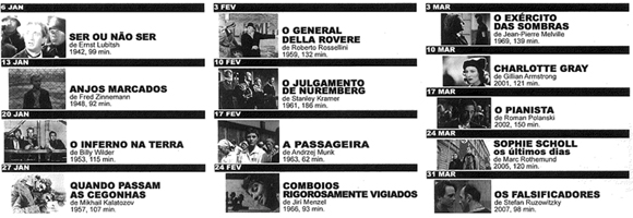 Foi difícil escolher estes 13 filmes, apesar de, à partida, termos a pretensão simples de mostrar «apenas» histórias narradas, deixando para depois a questão «guerra-guerra». Ordenámo-los cronologicamente: o primeiro é uma «actualidade» (1942) e, à medida que o ciclo avança, vamo-nos afastando do «acontecimento»: a «memória», a «reconstituição histórica», a «ficção» serão cada vez mais os materiais das obras que vamos ver.