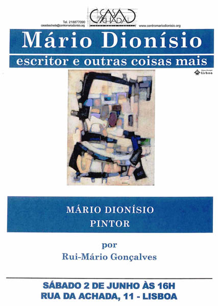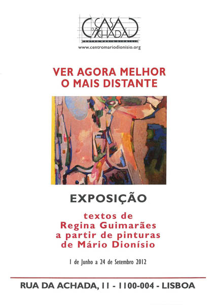 A Casa da Achada - Centro Mário Dionísio apresenta uma nova exposição que junta cerca de trinta obras plásticas de Mário Dionísio (pintura, alguns desenhos e uma tapeçaria) e os textos que Regina Guimarães escreveu a partir deles.