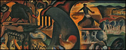 Uma exposição a partir de um quadro de Mário Dionísio, para chegar a outras paragens. É um quadro inacabado, do início dos anos 40, abandonado a meio caminho. Mas que caminho é esse? É uma tela de apreciáveis dimensões (1m40cm x 2m), com uma ambição mural, um mosaico onde parece caber o mundo inteiro. Uma tela cheia de mundo, em cada pincelada. Com campo e cidade, com exploradores e explorados, com homens e mulheres lendo colectivamente, trabalhando, desesperando, lutando. E até figuras, lá ao longe, num «déjeuner sur l'herbe». Com classes sociais diferentes (olhem aqueles chapéus!), do semeador ao homem de cartola, das camponesas aos operários e aos estivadores. E com mais mundo, que se vai revelando aos olhos de quem quiser ver.