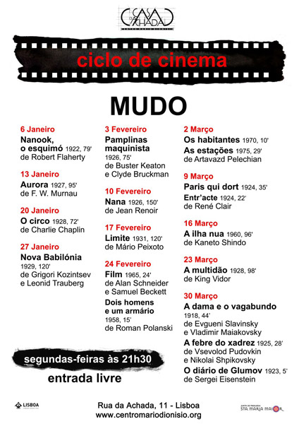 Este pequeno ciclo, a que foi dado o título de MUDO – «mudo» é o mundo a que falta o N, eu mudo, tu mudas, ela muda, etc. –, apresenta-se como um regresso às fontes, através de filmes realizados por pioneiros que inventaram o cinema como forma de expressão artística, mas também como vigoroso lembrete de filmes de elevadíssimo valor poético e político cujos realizadores prescindiram, num tempo em que a esmagadora maioria dos filmes era desde há muito falante e frequentemente verbosa, do recurso à palavra,