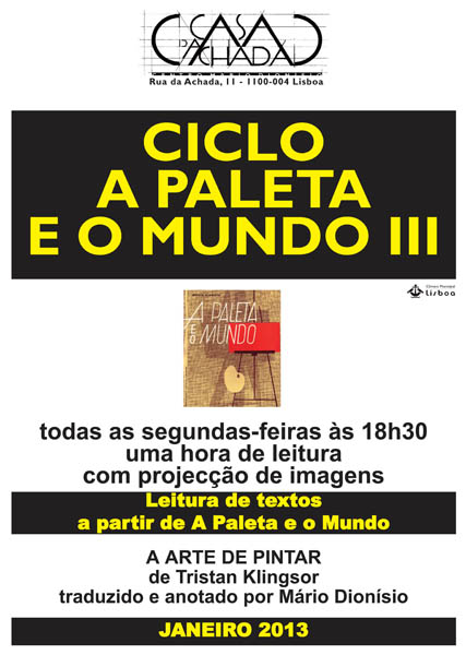 Em Janeiro começa a leitura comentada de A arte de pintar de Tristan Klingsor, traduzido e anotado por Mário Dionísio, por Eduarda Dionísio.