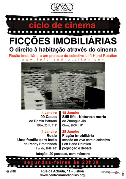 Este mês é o colectivo Left Hand Rotation a propor um ciclo de cinema chamado "FICÇÕES IMOBILIÁRIAS: O direito à habitação através do cinema".